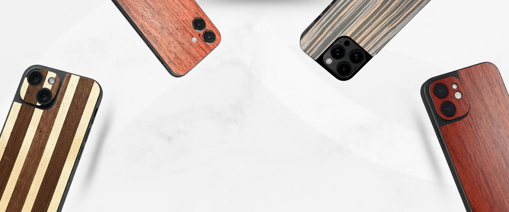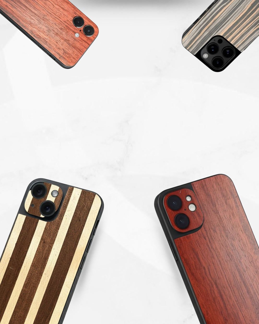 We craft 100% natural material based skins that are stylish, durable, and sustainable. No fake prints, no cheap imports—just real materials be it wood, vegan leather fabric etc, designed and made right here in India.